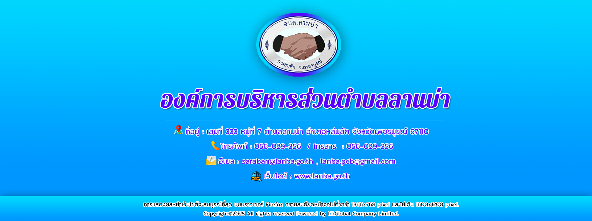 วันพฤหัสบดีที่ 23 ตุลาคม 2568 เวลา 08.00 น.ดร.พีรพัฒน์ วัชรินทรางกูร นายก อบต.ลานบ่า พร้อมด้วย รองนายก อบต.ลานบ่า และพนักงานส่วนตำบล ร่วมพิธีวางพวงมาลาวันปิยมหาราช ประจำปี พ.ศ.2568 เพื่อแสดงความจงรักภักดีและน้อมรำลึกถึงพระมหากรุณาธิคุณแด่พระบาทสมเด็จพระจอมเกล้าเจ้าอยู่หัว ณ หอประชุมอำเภอหล่มสัก